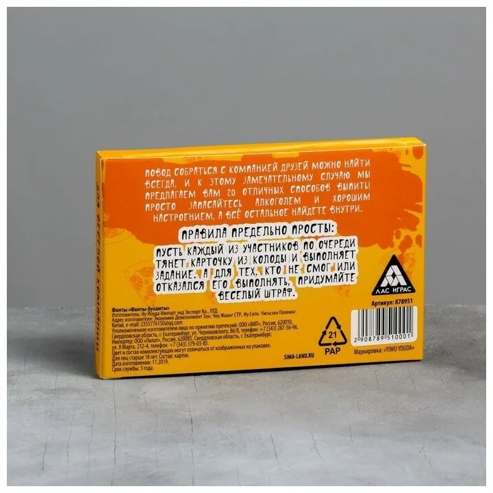 Купить игра для компании "фанты буханты" 20 карт от 100 руб. с доставкой до пункта выдачи в Энгельсе. Интернет магазин ДекаМаркет. Оплата при получении.